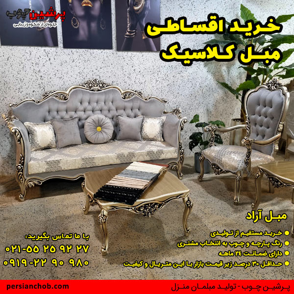 برای خرید اقساطی مبل کلاسیک نیز روی پرشین چوب حساب باز کنید. افزایش سر سام آور قیمت مبل موجب شده است که افرادزیادی برای خرید آن به صورت قسطی اقدام کنند.